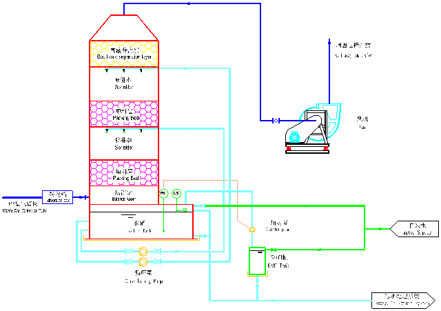 Waste gas from 9 level 3 closed plating in electroplating lines | ¢3500mm二级碱液喷淋立式塔 ¢3500mm two-stage alkali spraying vertical scrubber | 42000 |