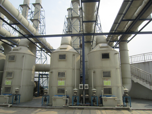 废气收集处理系统按照生产区间划分,实行独立控制。废气处理塔均采用进口优质PP材料制作,集中布置于室外。